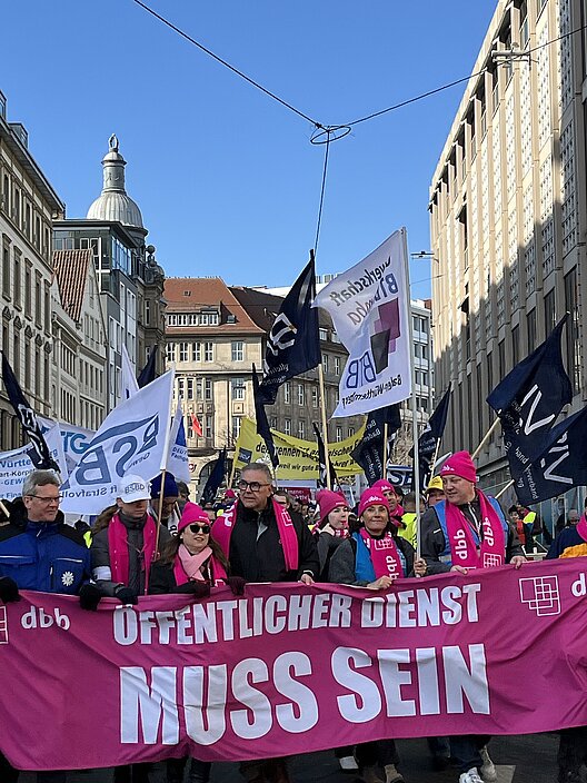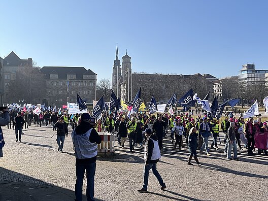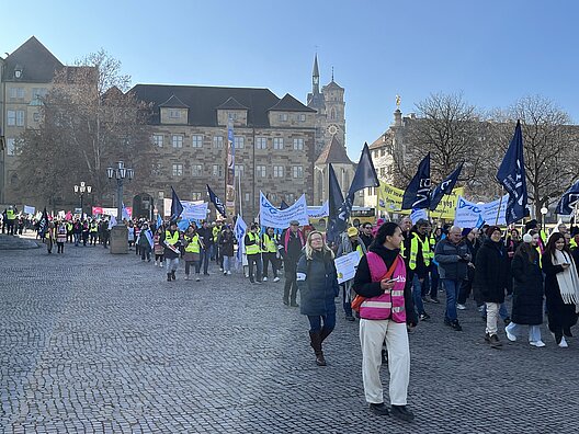 Mehr als 4.800 Beschäftigte des öffentlichen Dienstes haben heute (05.02.2026) mit einem Protestmarsch rund um die Stuttgarter Innenstadt für mehr Geld und bessere Arbeitsbedingungen demonstriert.