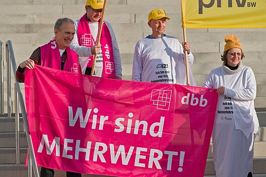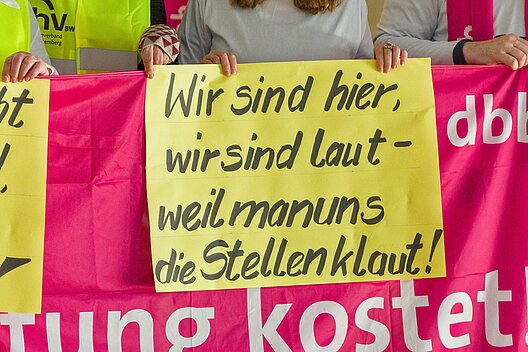 Um den Druck vor der dritten und letzten geplanten Verhandlungsrunde vom 11. bis 13. Februar 2026 massiv zu erhöhen und die berechtigte Forderung des dbb von 7 % und mindestens 300 Euro/Monat zu unterstreichen, rufen dbb und BBW für Donnerstag, 05. Februar 2026, in Stuttgart zu einer Demonstration mit Warnstreik auf. Sorgen Sie dafür und helfen Sie bitte mit, dass die Kolleginnen und Kollegen im ganzen Land mit ihren Aktionen Flagge zeigen: für faire Bezahlung, für Respekt vor ihrer Arbeit und für eine Zukunft, in der der öffentliche Dienst nicht weiter abgehängt wird.
